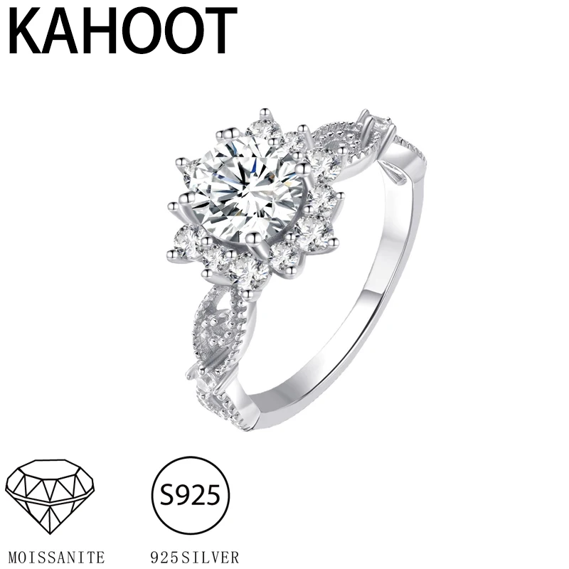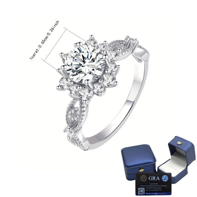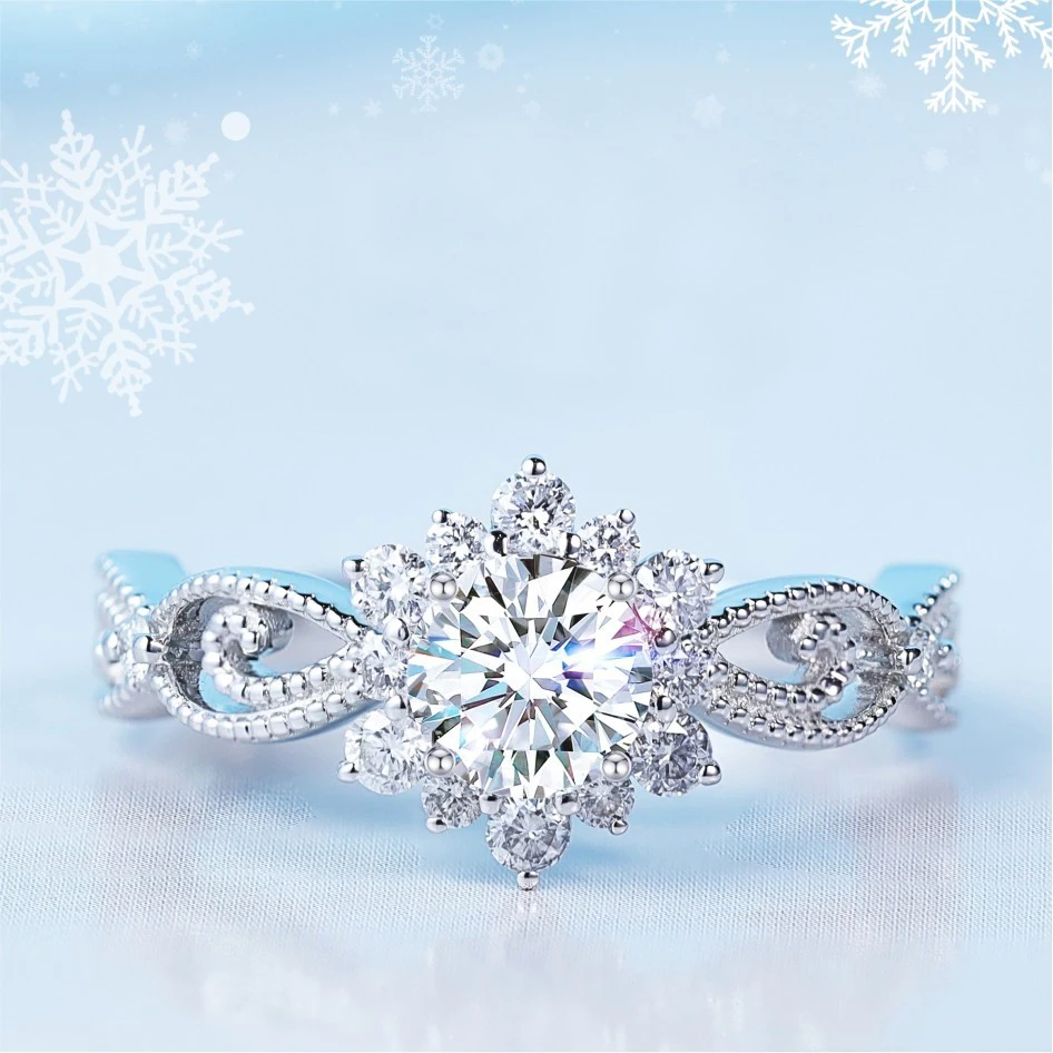 1 Carat Moissanite Snowflake Ring 925 Silver 3.3g Weight for Christmas and Winte