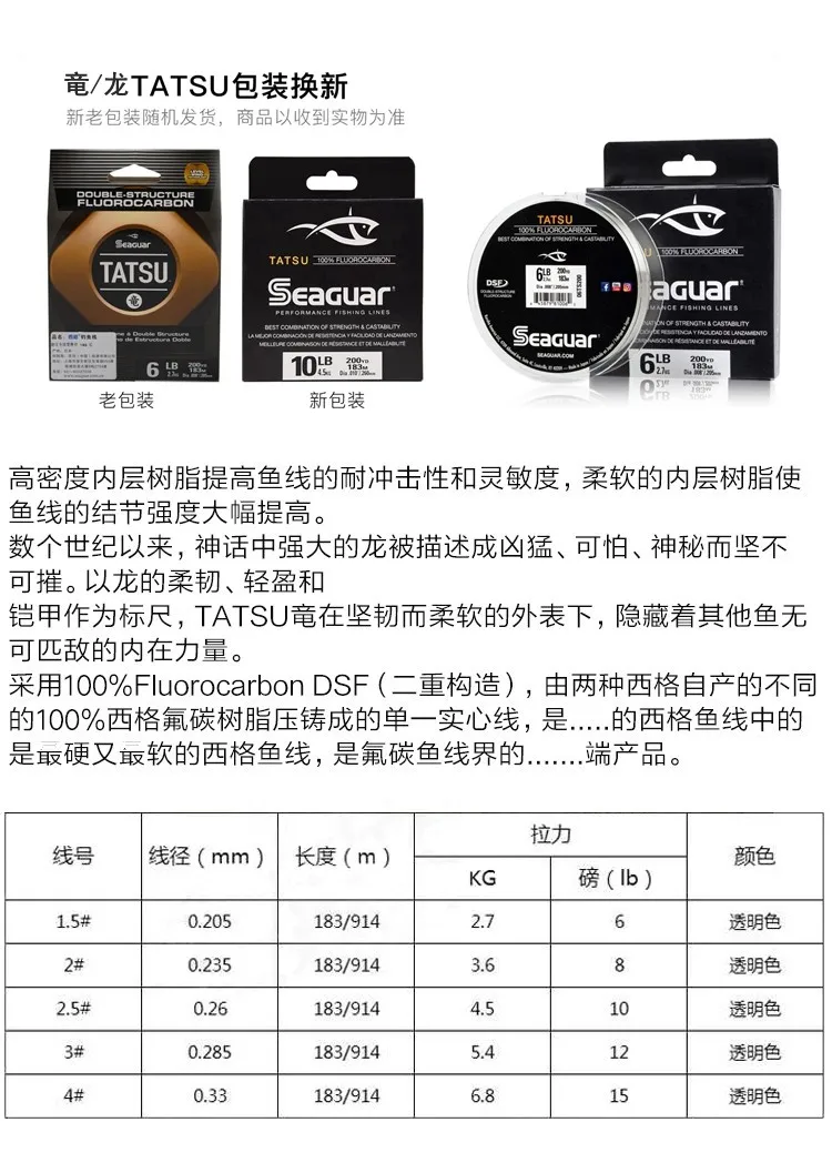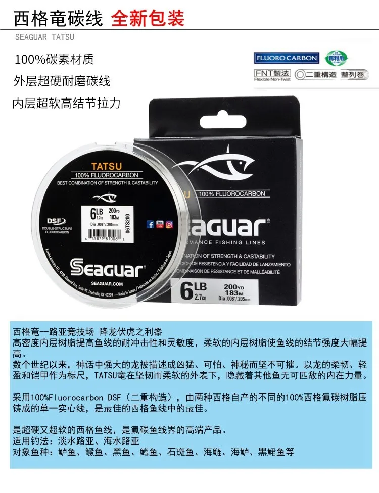 Original Seaguar TATSU 100% FLUOROCARBON Fishing Line Japan carbon line 183m/914