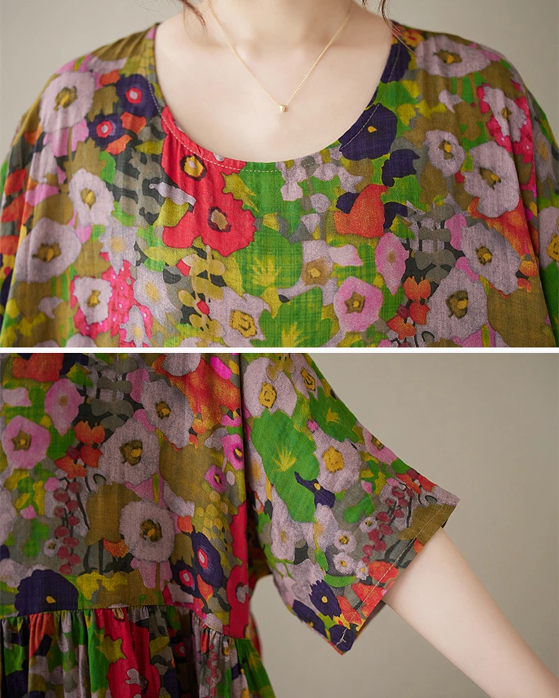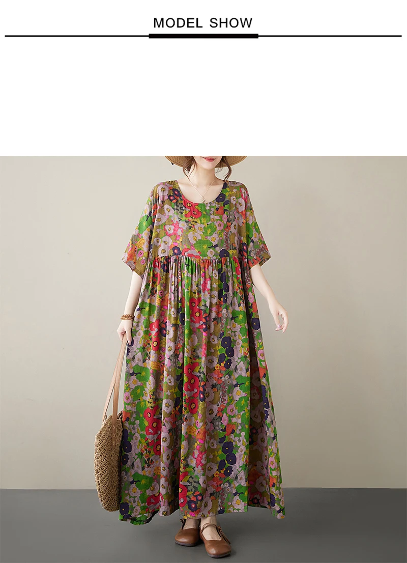 Oversize Cotton Summer Vintage Print Dresses For Women 2025 Casual Loose Long Dr